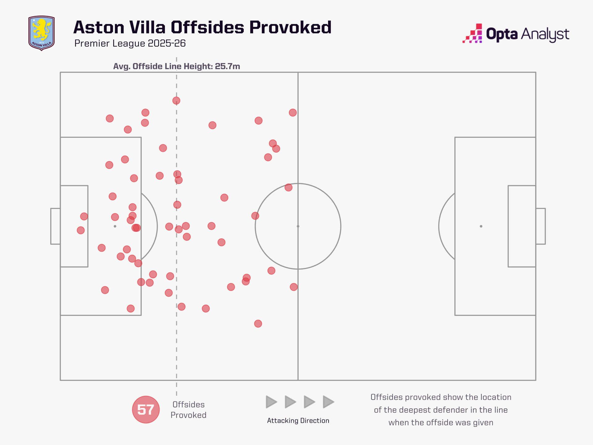 In the Premier League, Aston Villa are the team to have caught the opposition offside most often this season (57 times – 2.85 per game).
