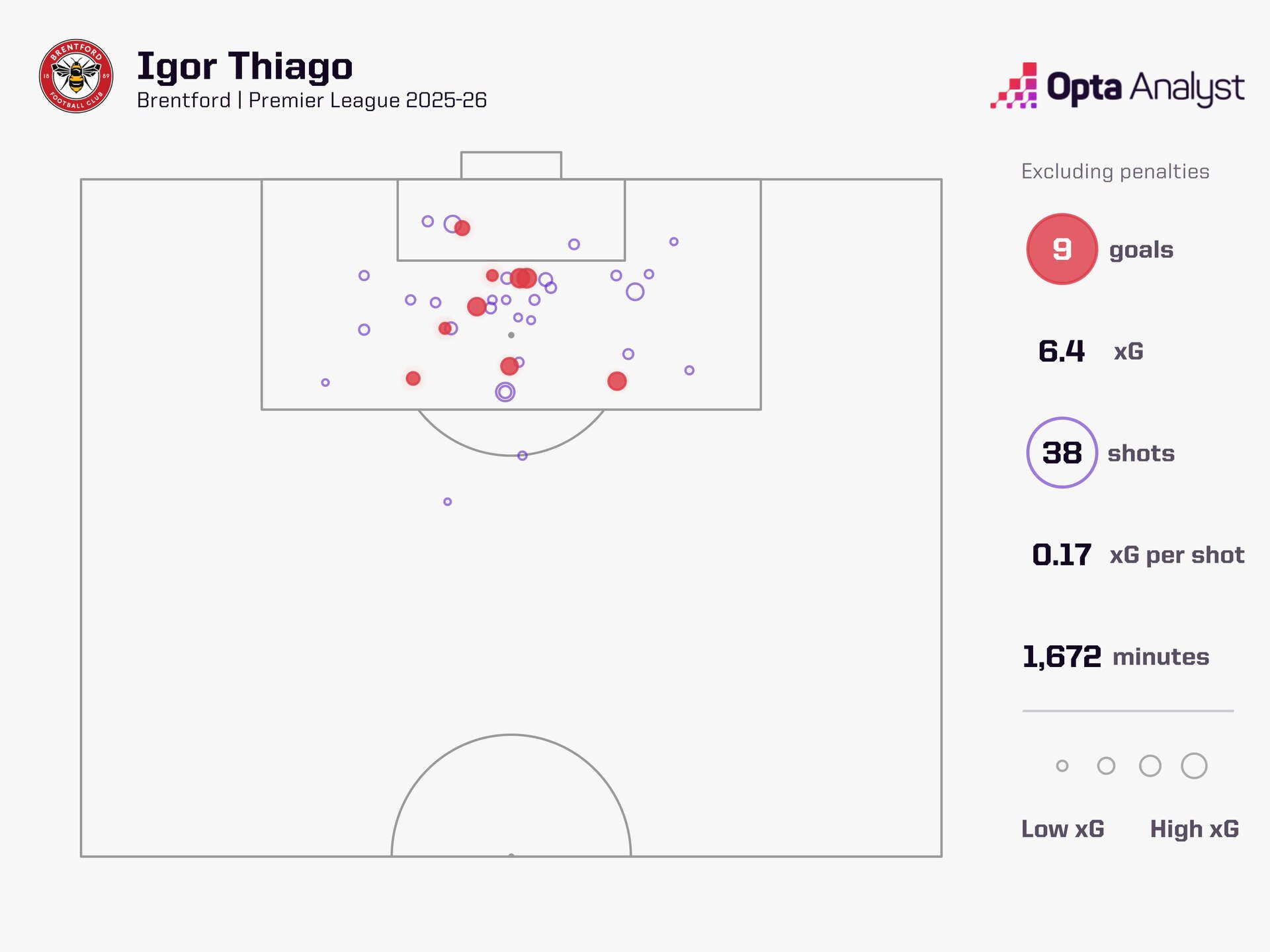 Only four teams have attempted fewer than Brentford’s 198 shots, but they are seemingly going for quality over quantity. Their 0.14 xG per non-penalty shot is the highest in the Premier League this season. That’s long been a metric in which Brentford have excelled.